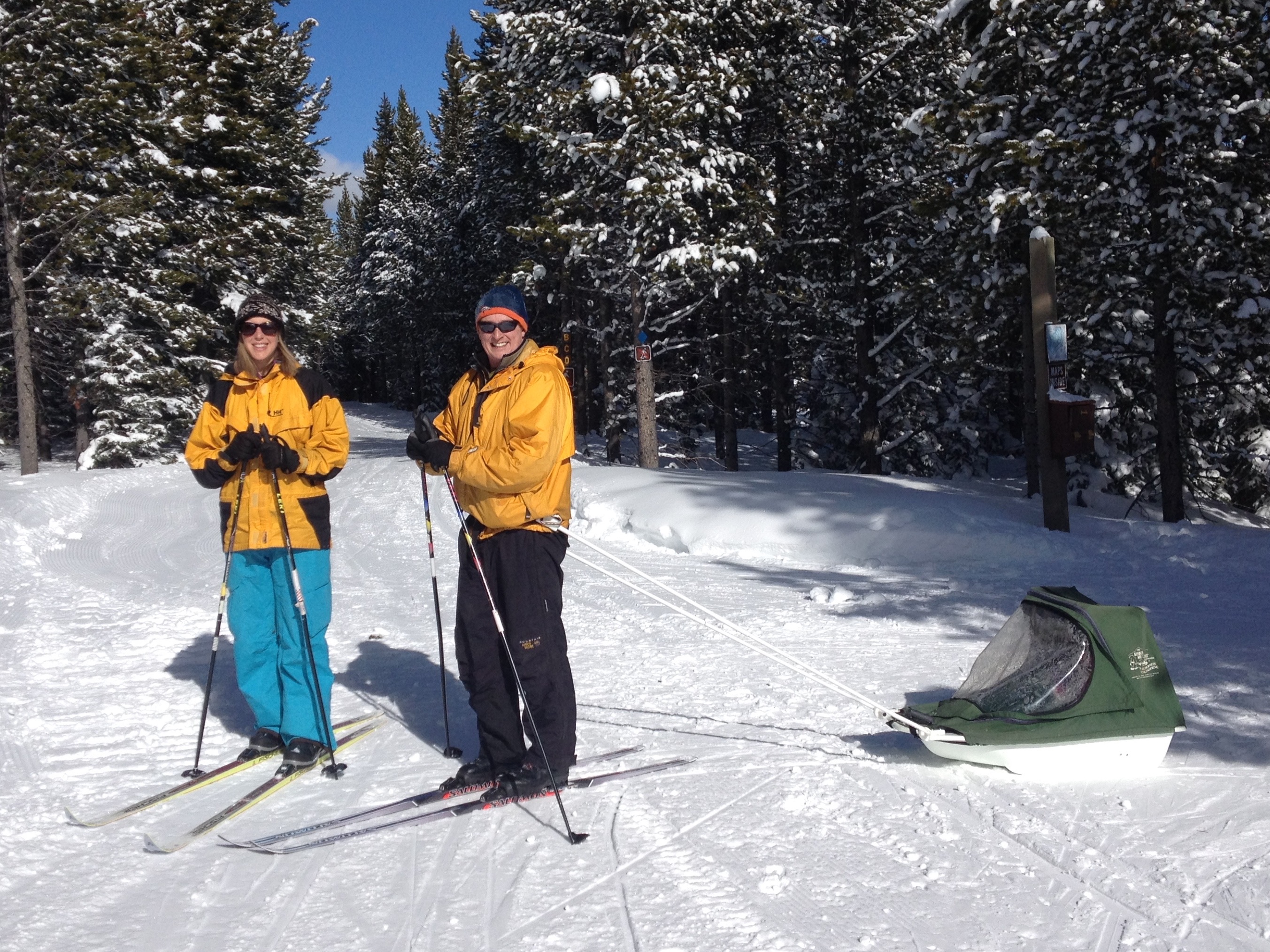 A gorgeous Saturday afternoon at Silver Crest! The trails are in great shape and beautifully groomed. Sunday should be warmer and still gleamingly sunny, so come on up & enjoy the trails! Cheers to the Faulkner family for posing for a website shot.