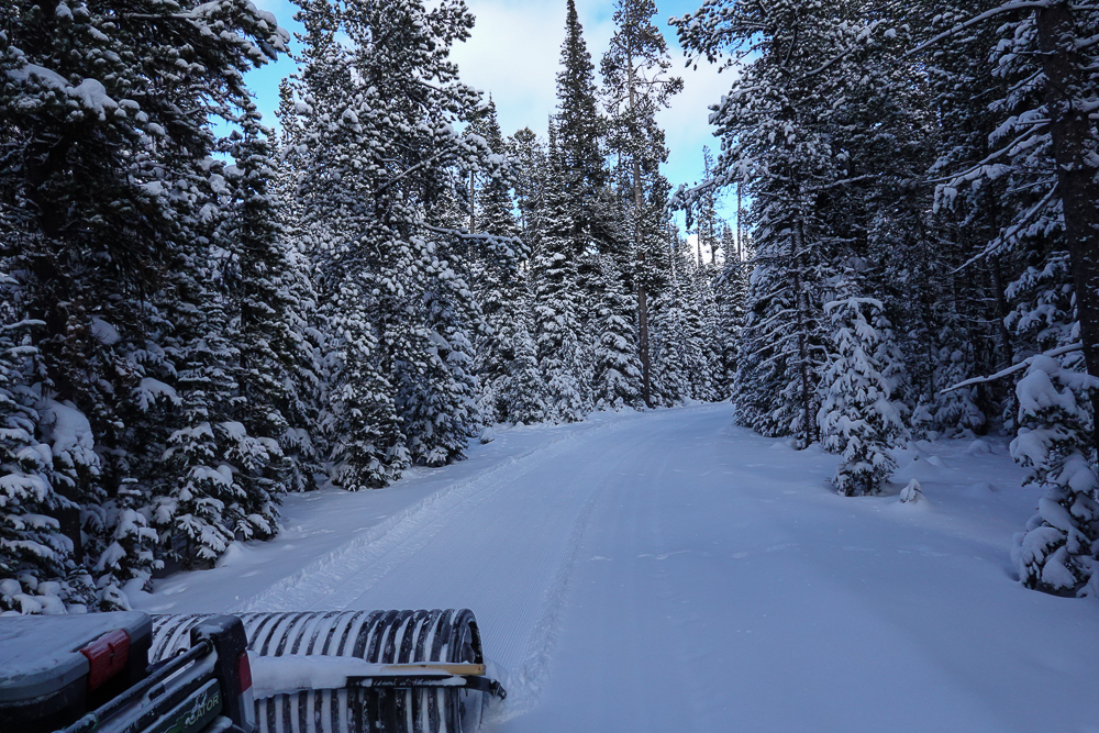 All trails except Quicksilver, Gold Run and parts of Sluice Box had two passes with the roller. Temps hovered around zero f. all day.
