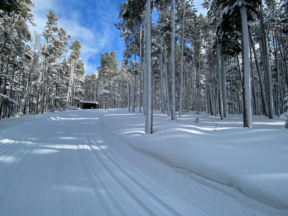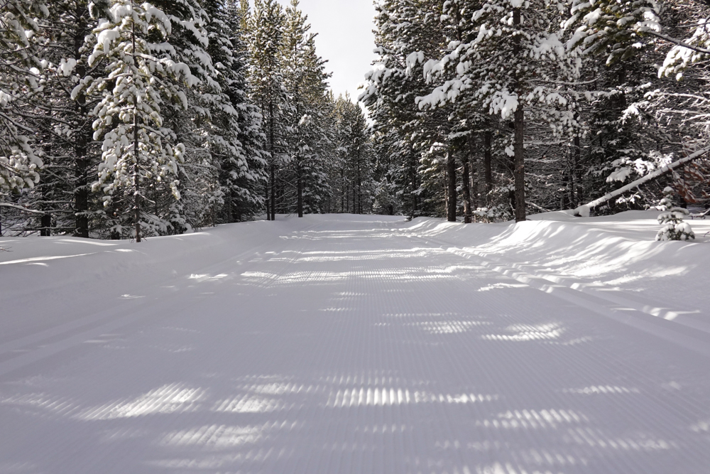 All trails are groomed and track-set on both sides. The outer loop got a third pass to make a deck for skate skiers.