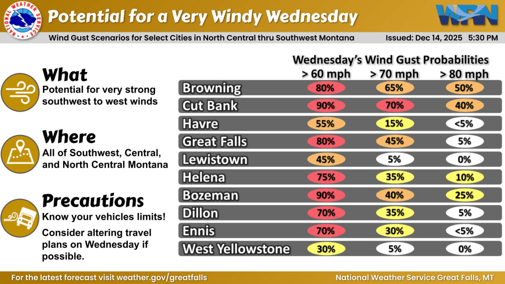 60 to 80mph Gusts Monday through Wednesday. Best to wait until Thursday for skiing and snowshoeing! We don’t want anyone to get hit by a falling tree.