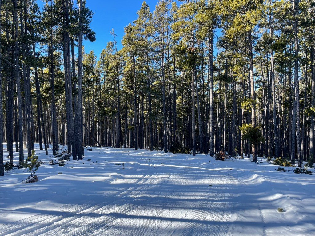A nice day today with several skiers and snowshoe folks enjoying the day. We are regrooming as much as possible to get the trails smoothed out and flat. They are getting better with each pass and in pretty good shape overall. Still some shallow classic tracks areas due to the hard base. Gold Run has been groomed several times now and is looking good. Skating was good today after going over it with the big ginzu groomer to soften things up this morning. The weather and trails trend is cold at night with hard and icy trails conditions in the mornings but softening in the afternoons.